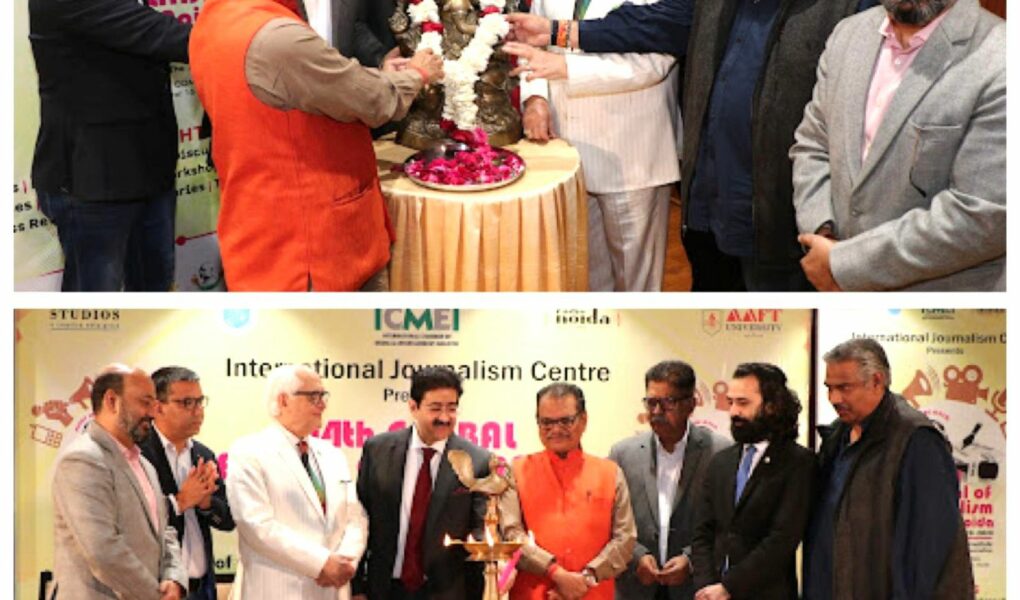 Dr. Sandeep Marwah, President of the Festival, Chancellor of AAFT University, and President of ICMEI, formally initiated the festival with a powerful narration of the formation of the International Journalism Centre, the declaration of International Journalism Day on 12th February, and the remarkable journey of the Global Festival of Journalism & AVGC.