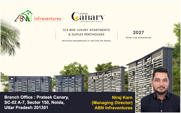 ABN Infraventures, Noida’s leading real estate consultant and authorized channel partner for Prateek Group, is proud to announce exclusive bookings for Prateek Canary, Sector 150 Noida – a luxury residential project designed for discerning homebuyers and investors. Strategically located near the upcoming Noida International Airport (Jewar) and Delhi-Mumbai Expressway, this RERA-approved development promises 12-15% annual appreciation and 4.5% rental yields, making it one of Noida’s most lucrative real estate investments in 2025.