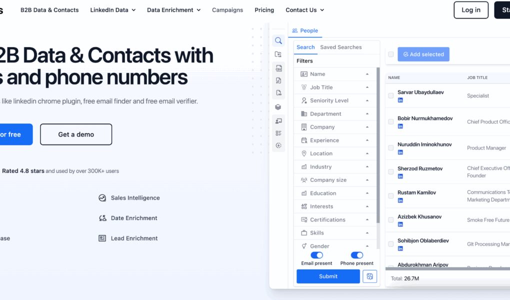 - Access to a global B2B contact database, including LinkedIn data