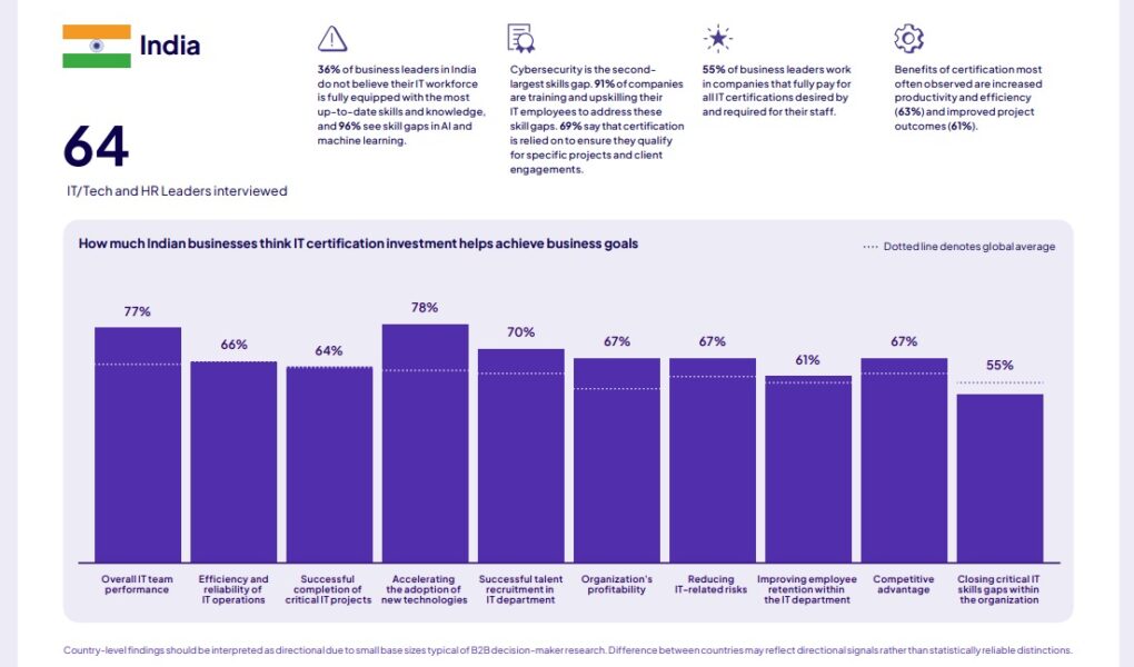 The report also finds that employers estimate an average of USD $17,646 in additional annual value for every certified IT employee, rising to nearly USD $20,000 in IT workforces that are fully equipped with up‑to‑date skills. That value is reflected in outcomes employers track closely, including employee performance and retention, cost savings, issue‑resolution time, and customer satisfaction.