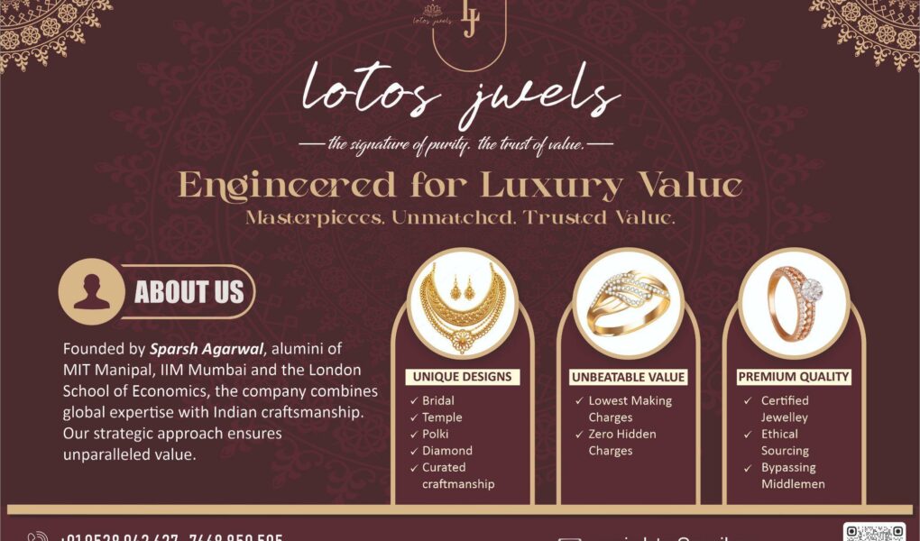 Founded by Sparsh Agarwal, Lotos Jwels combines global academic excellence with timeless craftsmanship to offer world-class designs at unparalleled value. By eliminating unnecessary supply chain layers, the brand has made luxury purchases affordable for every household in the region.