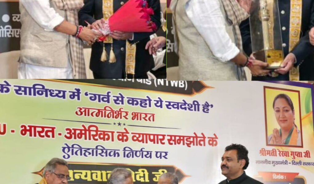 Renowned social worker and industrialist Shri S.S. Agrawal has been conferred with the prestigious “Vyapari Ratna Award.” The award was presented by Shri Sunil Singhvi, Chairman of the Bhartiya Vyapari Kalyan Board, under the Government of India.