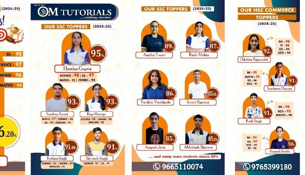 Located in Nalasopara West, OM Tutorials has become known as one of the best coaching classes in the region for SSC, CBSE, and Commerce streams. The founders combined their academic experience to design a disciplined six-step learning model.