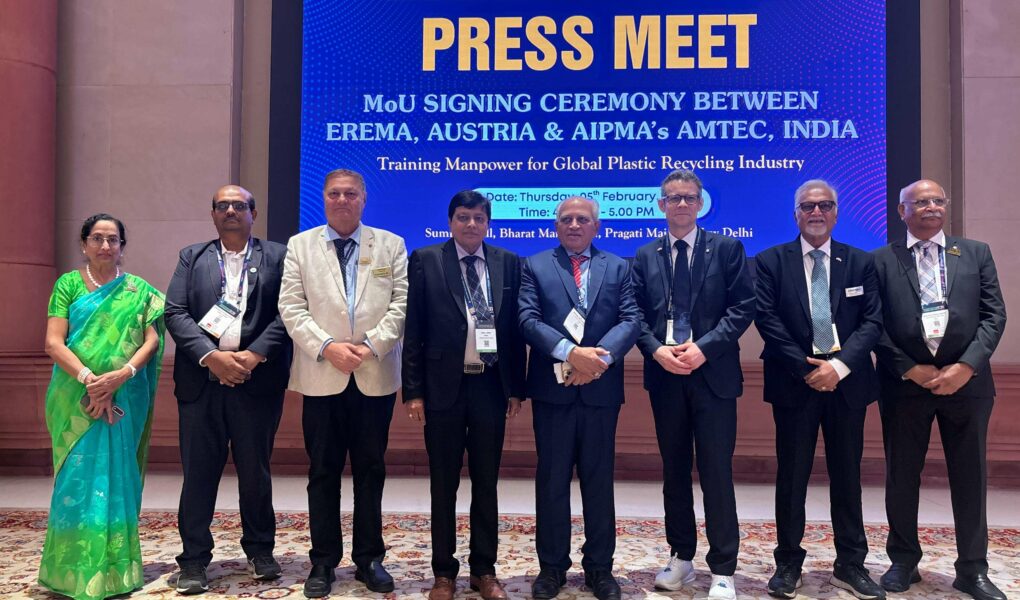 New Delhi: In a major step toward aligning India’s plastic recycling industry with global standards and advancing the vision of a circular economy, a landmark MoU has been signed between the All India Plastics Manufacturers Association (AIPMA)’s Arvind Mehta Technology and Entrepreneurship Center (AMTEC) and Austria’s globally renowned plastic recycling machinery company, EREMA. Under this partnership, a cutting-edge Recycling Skill Development Center will be set up in Mumbai, aimed at addressing the acute shortage of trained and skilled manpower in the recycling sector.