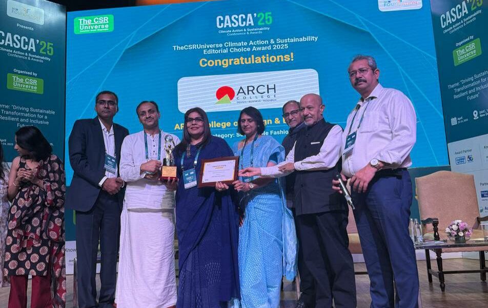 Jaipur: ARCH College of Design and Business, Jaipur has been honored in the Sustainable Fashion category at the Climate Action & Sustainability Conference & Awards (CASCA’25). The event was hosted by TheCSRUniverse and presented by M3M Foundation. This recognition highlights ARCH’s strong commitment to sustainability and climate action.
