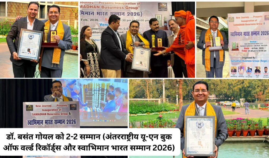 New Delhi | 17 February 2026 :On 16 February 2026, Dr. Basant Goel was conferred with two distinguished honors—the U-N Book of World Records title and the Swabhiman Bharat Samman 2026—in recognition of his extraordinary contributions to humanitarian service, healthcare, and Gau Seva.