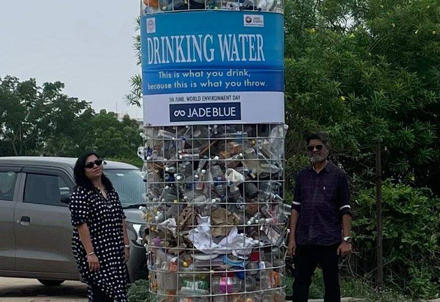 Ahmedabad, India: This World Environment Day, Ahmedabad’s busiest corners were taken over by environmental storytelling from Sajit Surendran and Ishanee Sajit, the creative minds behind Fresh Lime Soda Creatives (FLS). Their latest installation series, “This is what you drink because this is what you throw?” , features nine towering 12 foot water bottles filled with real plastic waste, each placed strategically across the city to confront viewers with the harsh reality of plastic pollution and acknowledge the need of saving our mother earth by reducing the use of plastic.