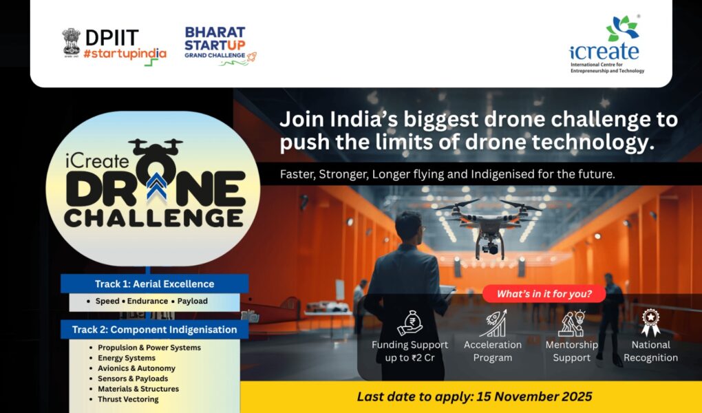 “The iCreate Drone Challenge is a bold step towards building India’s leadership in drone innovation. By bringing Startup India’s reach together with iCreate’s deep tech expertise, this initiative gives our startups a national platform to test, validate and scale world-class drone technologies, aligning with our mission to make India a global hub for cutting-edge manufacturing and innovation.”