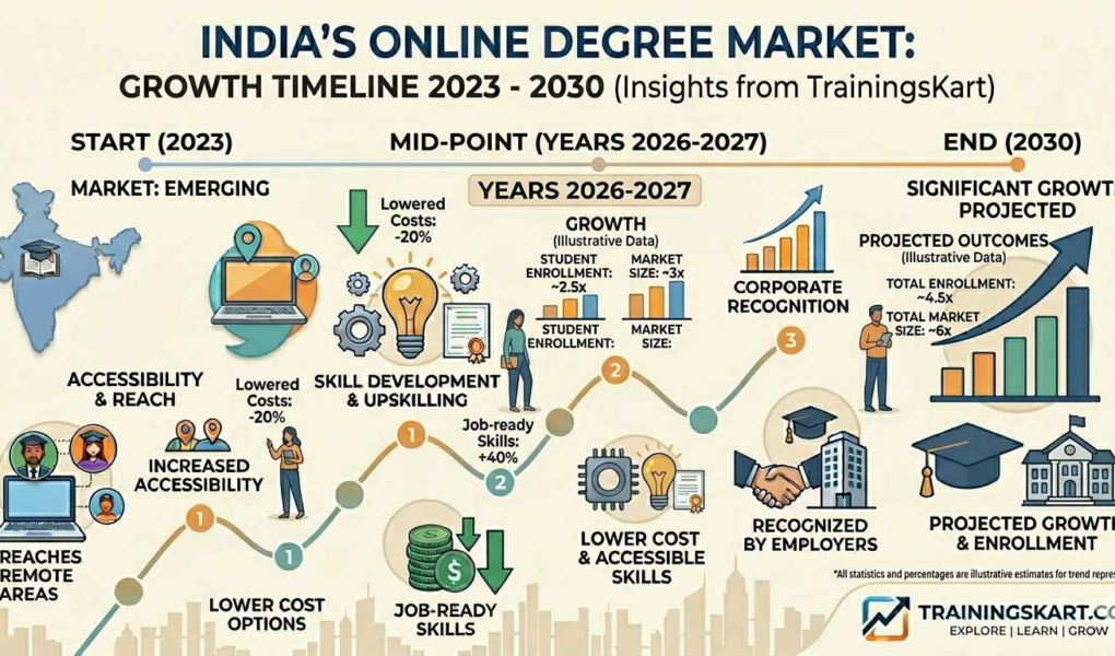 New Delhi, India – April 2026 – TrainingsKart is a leading online education platform in India, has released updates on the strong growth expected in the country’s online degree market. This sector is set to grow strongly by 2030. It is driven by changing learners’ needs and supportive policies.