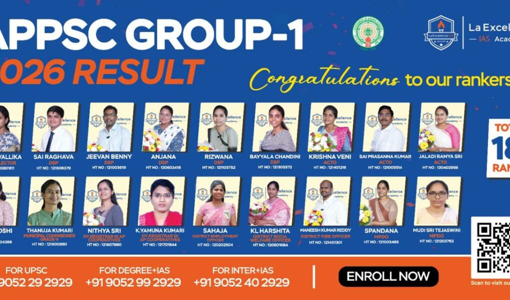 Adding to its legacy of consistent results and academic excellence, La Excellence IAS Academy has once again demonstrated its leadership in civil services preparation with an outstanding performance in the AP Group-I Examination (APPSC).