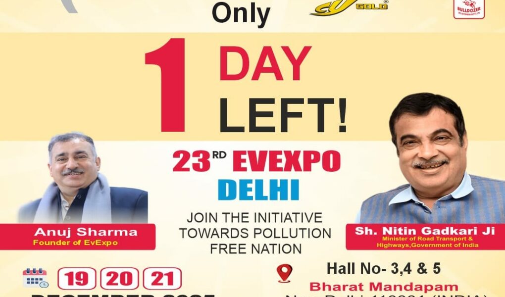 The countdown has reached its final moment with just 1 day left for the 23rd EVEXPO Delhi 2025, the world’s largest exhibition dedicated exclusively to Electric Vehicles and future mobility. Taking place at Bharat Mandapam, Pragati Maidan, New Delhi, EVEXPO Delhi 2025 is set to become a landmark gathering for the EV ecosystem, bringing together innovation, policy, technology, and sustainability under one roof.