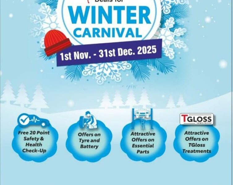 •A complimentary 20-point vehicle safety and health check-up, including inspection of tyre and battery condition, examination of rubber components, lights, fog lamps, and other essential parts to ensure optimal performance throughout the winter season.