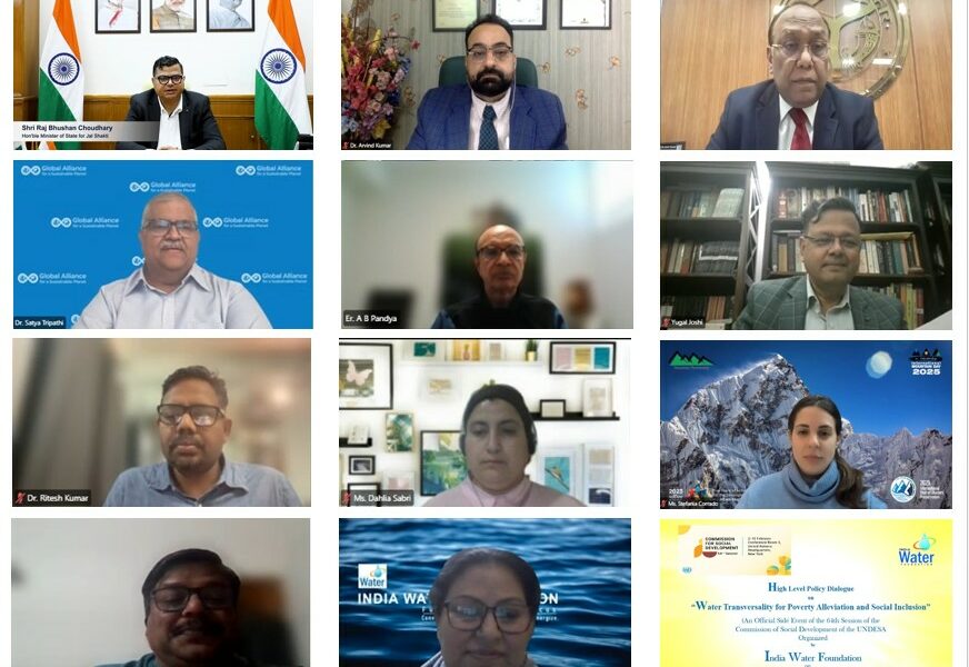 “There is an urgent need to adopt a transversality approach to water governance, one that breaks sectoral silos and embeds water at the centre of planning for poverty reduction, health, agriculture, energy, and climate resilience. Traditional, single-sector strategies are no longer adequate in the face of complex and socio-economic inequalities. Instead, we need integrated policy frameworks that bring government, industry, civil society, and communities together to co-create solutions that benefit both people and the planet” highlighted Sh. Raj Bhushan Chaudhary, Minister of State for Jal Shakti, Government of India, captivating over 500 online participants, experts, and global participants at a high-level policy dialogue on “Water Transversality for Poverty Alleviation and Social Inclusion” organized by the India Water Foundation as an official side event of the 64th Session of the UN Commission on Social Development. The event spotlighted water not as a mere utility, but as a transformative force weaving through health, livelihoods, gender equity, and climate resilience especially in a nation where rural poverty and water stress intersect dramatically. He painted a vivid picture of India’s water revolution under the leadership of Prime Minister Narendra Modi, spotlighting Jal Jeevan Mission’s leap from 60% to over 81% rural tap water coverage, reaching 15 crore homes.